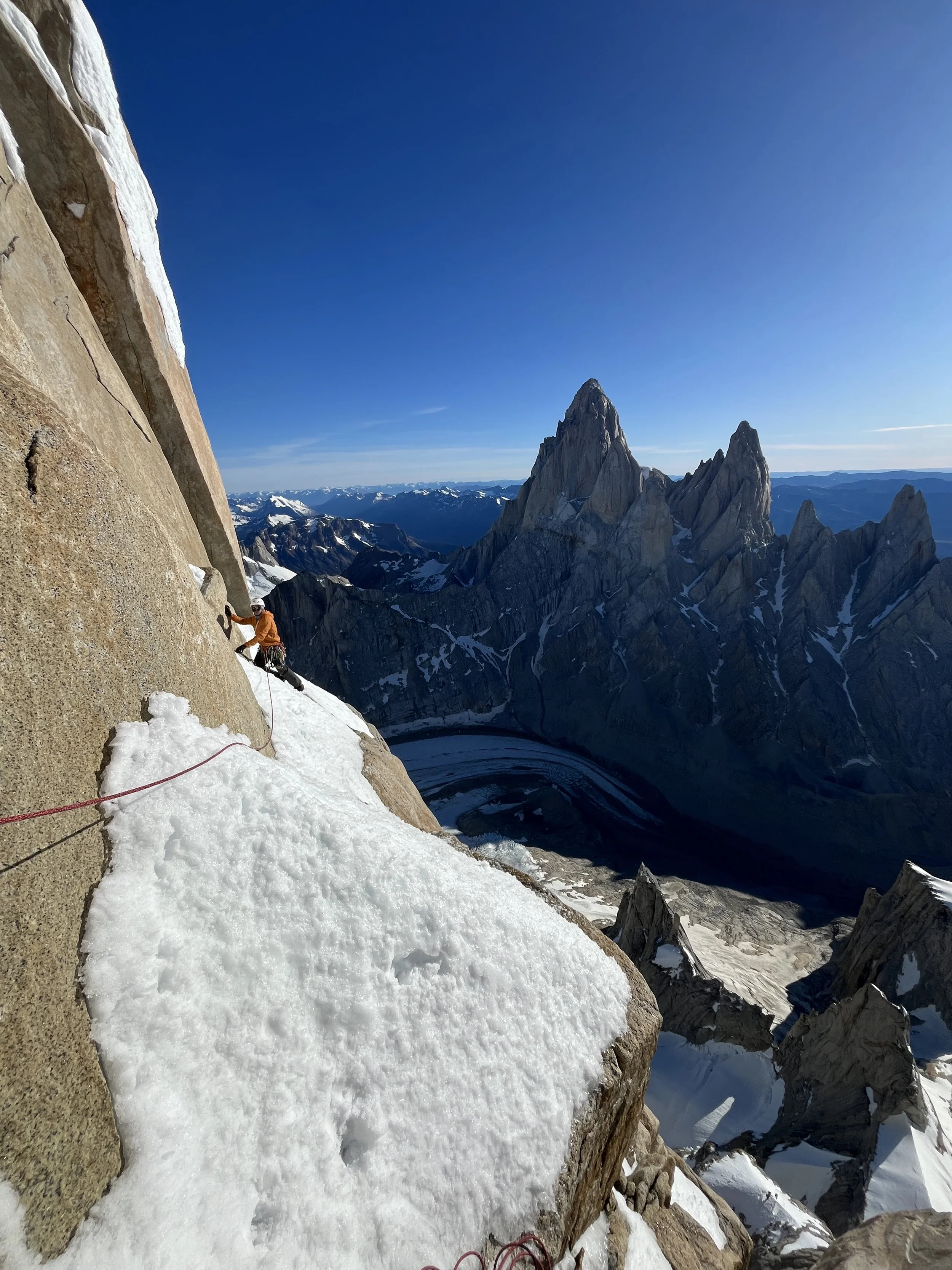 The Southeast ridge was a true test of everything I have learned in climbing and having succeeded feels incredibly satisfying. I have been dreaming about this objective for years and I feel incredibly lucky to have climbed it in a single day with such a dialed partner. This climb is undoubtably one of the most incredible experiences I’ve ever had in the mountains, and I hope this write-up can inspire others to pursue their own dreams or this very climb. This route, especially when completed in two days, is certainly a reasonable objective for many climbers as none of the pitches are too challenging on their own. I anticipate this line becoming more popular in the future and I would urge those heading down to Patagonia to give this thing a try.